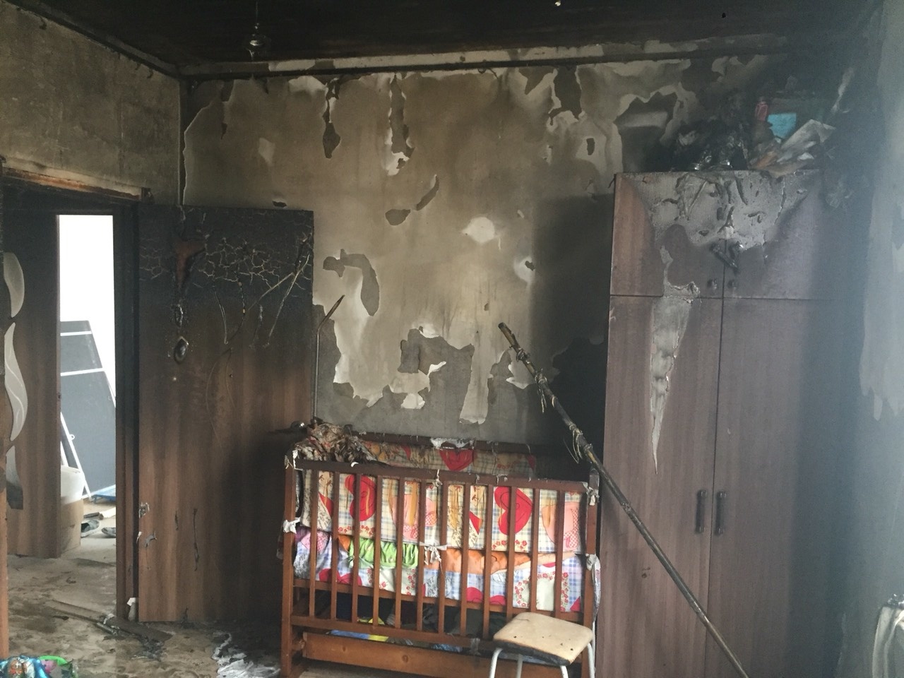 В спальне находился двухлетний ребёнок, который, к сожалению, получил термические ожоги различных частей тела.