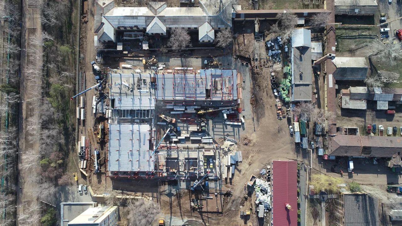 На сегодняшний день уже готова фундаментная плита, полностью собран каркас медцентра. Все металлоконструкции производят на пяти заводах: двух оренбургских и по одному – в Орске, Самаре и Уфе. На 100% завершена кирпичная кладка цоколя и специальных помещений под томограф и рентгеновский аппарат, внутри выполнено 2500 м2 перегородок, на первом этаже завершена стяжка пола.