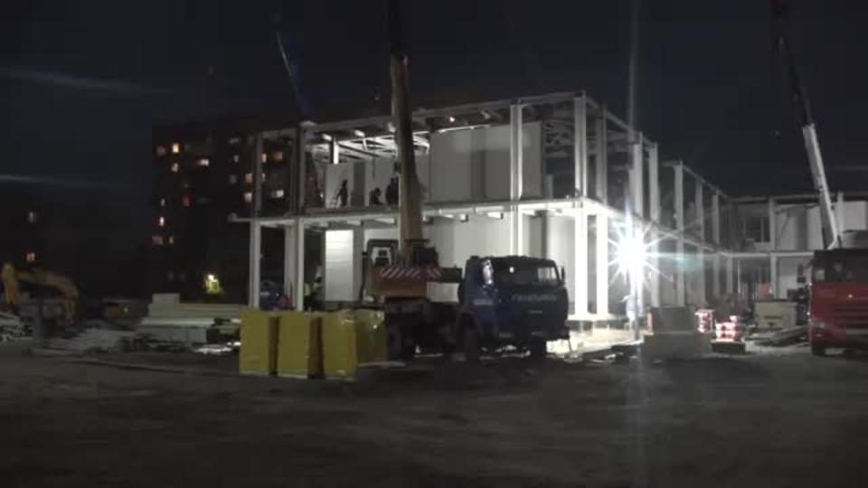 За рекордно короткие сроки полностью был подготовлен фундамент, установлено 99% сэндвич-панелей, уже выполнены работы по устройству плиты перекрытия 2 этажа, на 51% выполнено устройство внутренних перегородок. Набранный темп работ позволяет выполнить поставленную задачу точно в срок. Специалисты работают на строительстве круглосуточно семь дней в неделю.