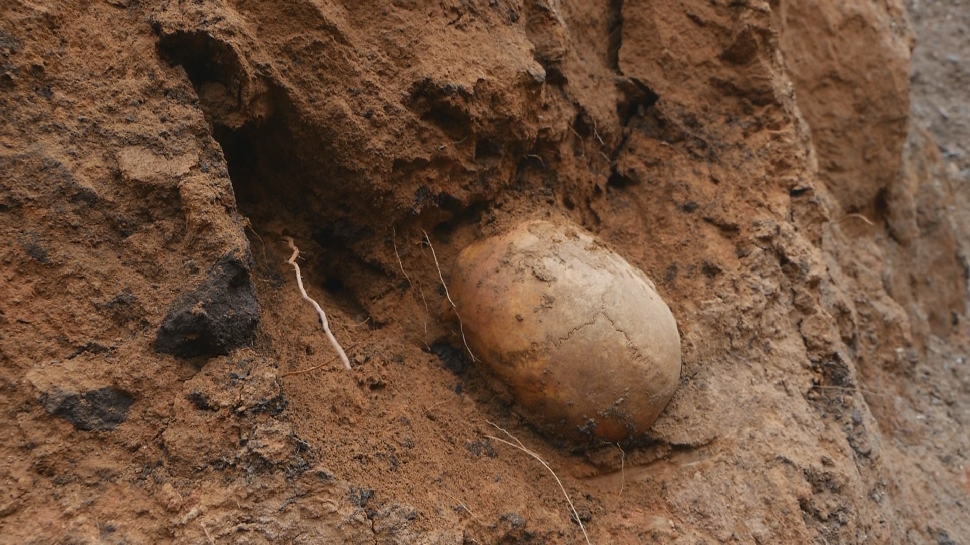 На месте находки работает полиция и следственный комитет. Рядом с черепом обнаружены следы деревянного гроба. Сейчас производится подъём человеческих останков на поверхность.
