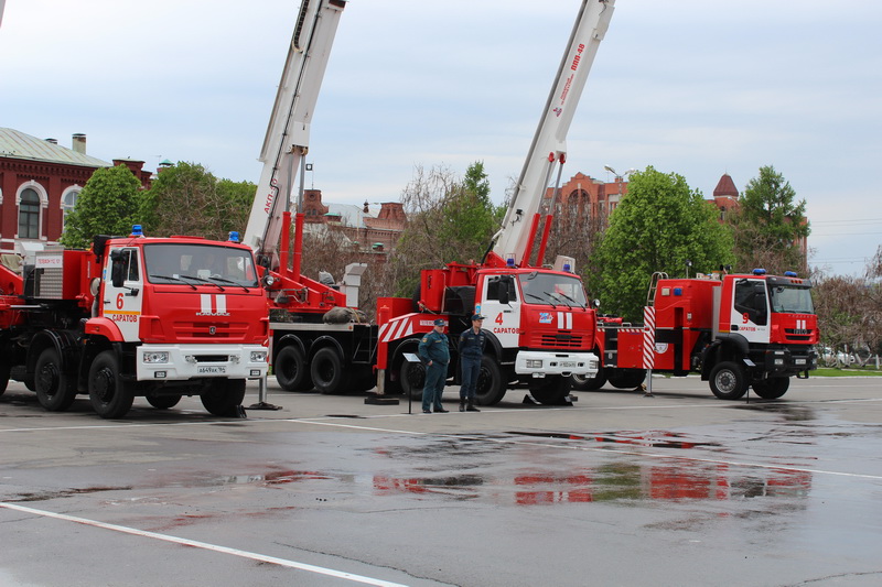 В честь праздника колонна пожарно-спасательной техники с включёнными громкоговорителями проехала по улицам Оренбурга.