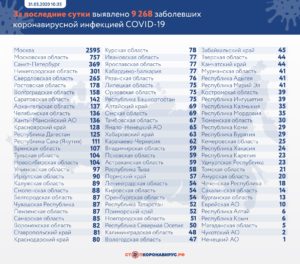 В России за последние сутки выявлено заболевших коронавирусной инфекцией COVID-19 – 9 268 в 84 регионах, в том числе в Оренбургской области – 54. 3 784 (40,8%) случаев выявлено активно у контактных лиц без клинических проявлений болезни. В Российской Федерации нарастающим итогом зарегистрировано 405 843 случая (+2,3%) коронавирусной инфекции в 85 регионах, число выписанных...