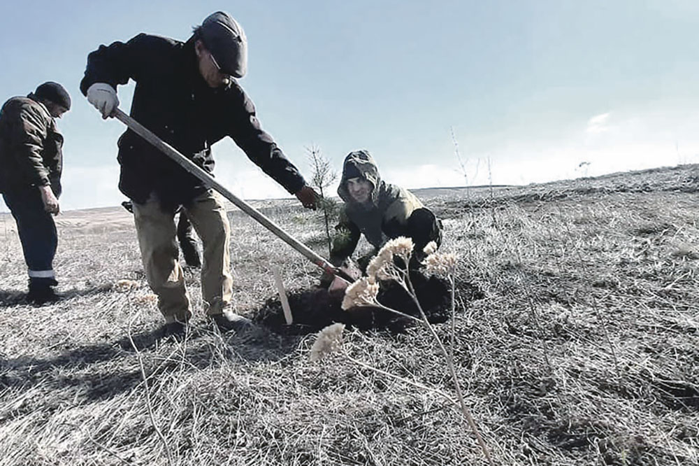 В Асекеевском районе к Дню Победы посадили 150 саженцев сосны и березы