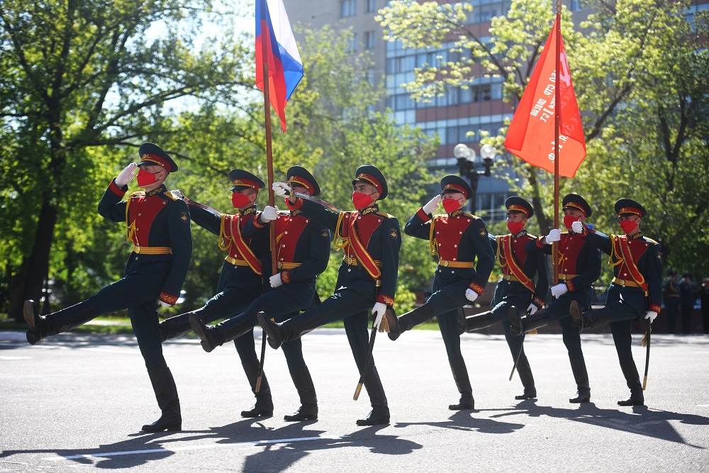 Утром 9 мая возле Дома Советов в Оренбурге губернатор Денис Паслер торжественно передал копию Знамени Победы военным.