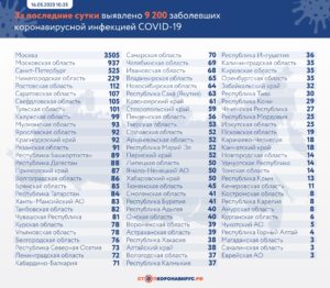 За последние сутки в России выявлено заболевших коронавирусной инфекцией COVID-19 – 9 200 в 83 регионах, в том числе в Оренбургской области – 35. 4 124 случая (44,8%) выявлены активно у контактных лиц без клинических проявлений болезни. В Российской Федерации нарастающим итогом зарегистрировано 272 043 случая (+3,5%) коронавирусной инфекции в 85 регионах, число выписанных...