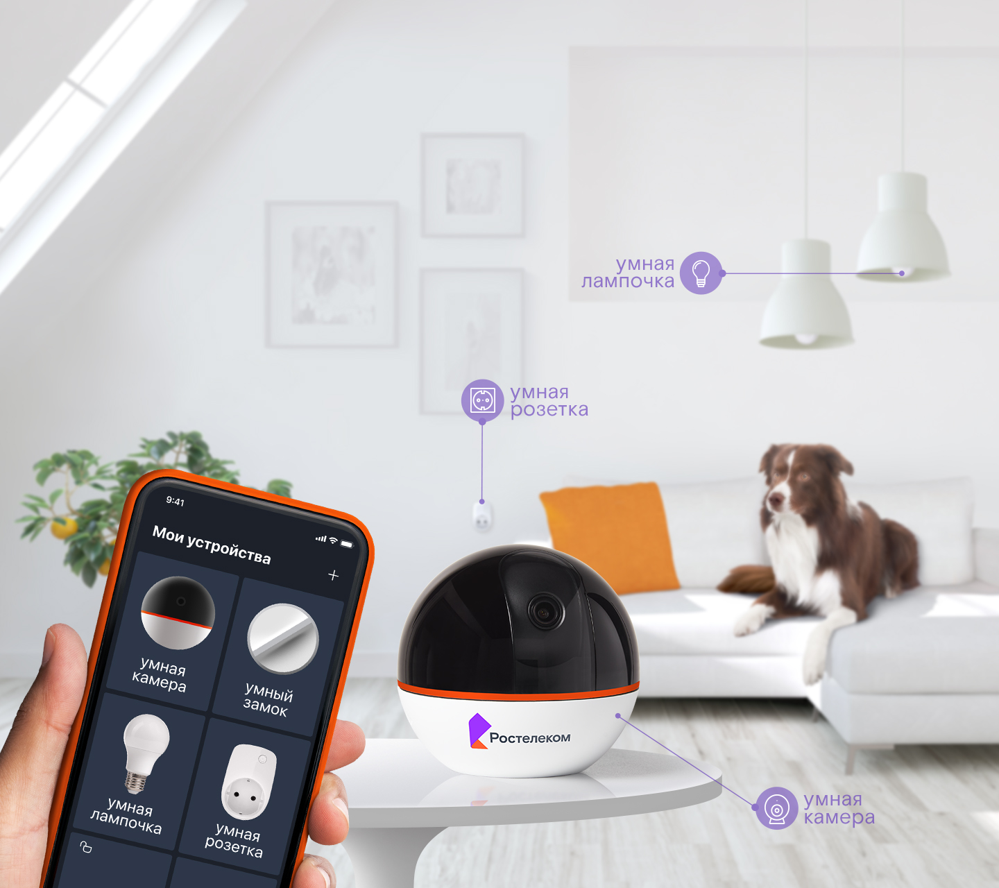 Облачный сервис «Умный дом» компания «Ростелеком» развивает с 2017 года. Он включает в себя домашнее и внешнее видеонаблюдение, а также комплекты для безопасности дома (датчики открытия дверей и окон, движения, протечки, задымления) и управления домашним хозяйством (умные розетка, лампочка и другие устройства). Все они управляются с помощью мобильного приложения или личного интернет-кабинета — из любой точки мира, где есть интернет. «Умный дом» — это технологии комфорта и новых возможностей для дома.