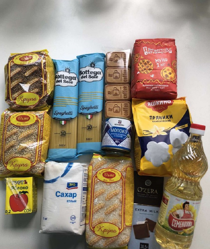 Стоимость одного продуктового набора составляет 503,8 рубля. Она единая по области. В состав пайка входят: гречка, рис, перловка, мука, макароны, сгущёнка, подсолнечное масло, сахар, печенье.