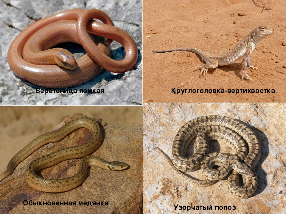 В Красную книгу Оренбургской области занесены земноводные: гребенчатый тритон и травяная лягушка, а из пресмыкающихся – круглоголовка-вертихвостка, ломкая веретеница, разноцветная ящурка, обыкновенная медянка, узорчатый полоз.