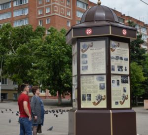В Бугуруслане на центральной площади установили афишную тумбу с символикой 75-летия Победы