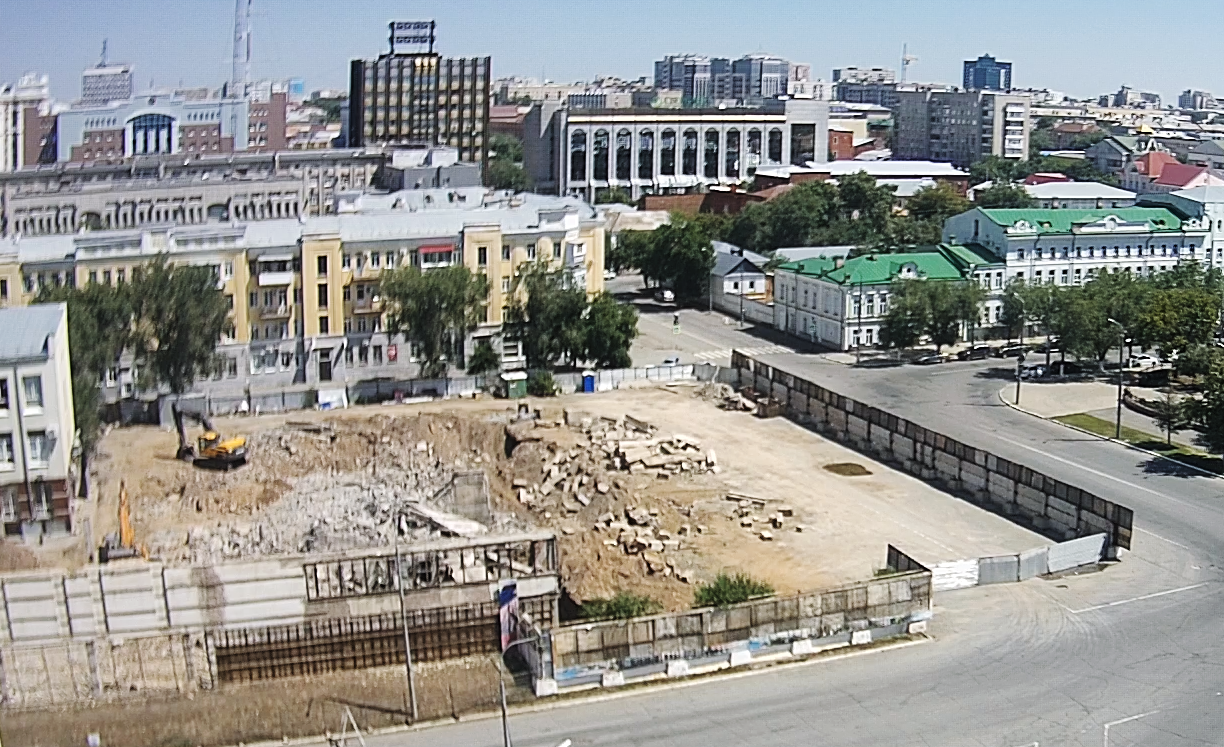 Теперь рабочим осталось очистить площадку от строительного мусора. Освободившееся место станет частью центральной городской площади.