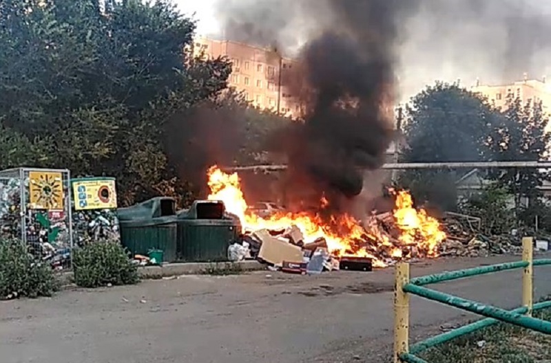 Пожар произошел на улице Ткачева. Фото горящей мусорной площадки опубликовали в соцсетях очевидцы.