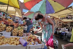 – Пожалуйста, наденьте маску и перчатки! Нас тут штрафуют на три тысячи рублей, если обслужим покупателя, у которого нет маски и перчаток. У вас нет? Вот, возьмите из пакета хотя бы маску, – уговаривает нас мужчина, продающий бакалею в уличной палатке на территории Славянского базара. В пакете у него аккуратно сложены нарезанные текстильные салфетки...