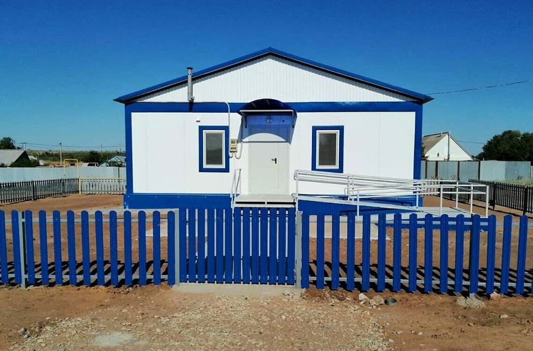 Организованы кабинет приёма фельдшера, акушерский, детский, процедурный и прививочный кабинеты, холл для посетителей, санитарно-бытовые комнаты, тепловая завеса на входе, пожарно-охранная сигнализация. Подведены коммуникации, есть горячая и холодная вода, завезена частично мебель.