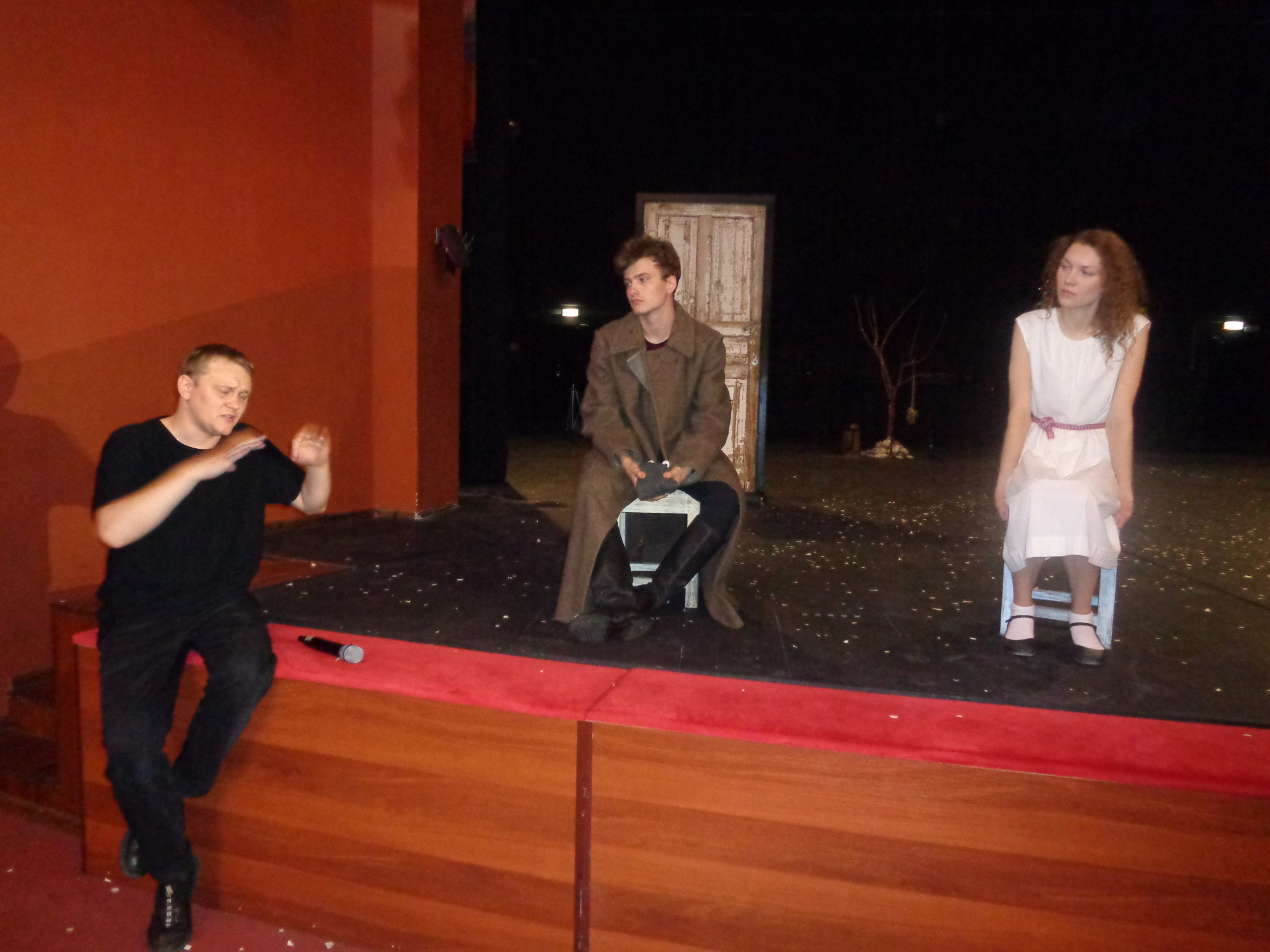 Спектакль, над которым сейчас работают актёры, это «Мой бедный Марат» по одноимённой пьесе Алексея Арбузова. Три героя – Марат, Лика и Леонидик – на протяжении спектакля предстают перед нами в разное время своей жизни. Вот они дети, потерявшие родителей в блокадном Ленинграде, навсегда оставшиеся родителями друг другу, вот 1946 год, окончание войны и они уже молодые люди. Детская дружба сменяется противоречивыми чувствами, открывается любовный треугольник, но не такой, где кто-то любит, а кто-то ненавидит. Они по-прежнему остаются самыми дорогими друг для друга людьми. Но обретут ли они долгожданное счастье?