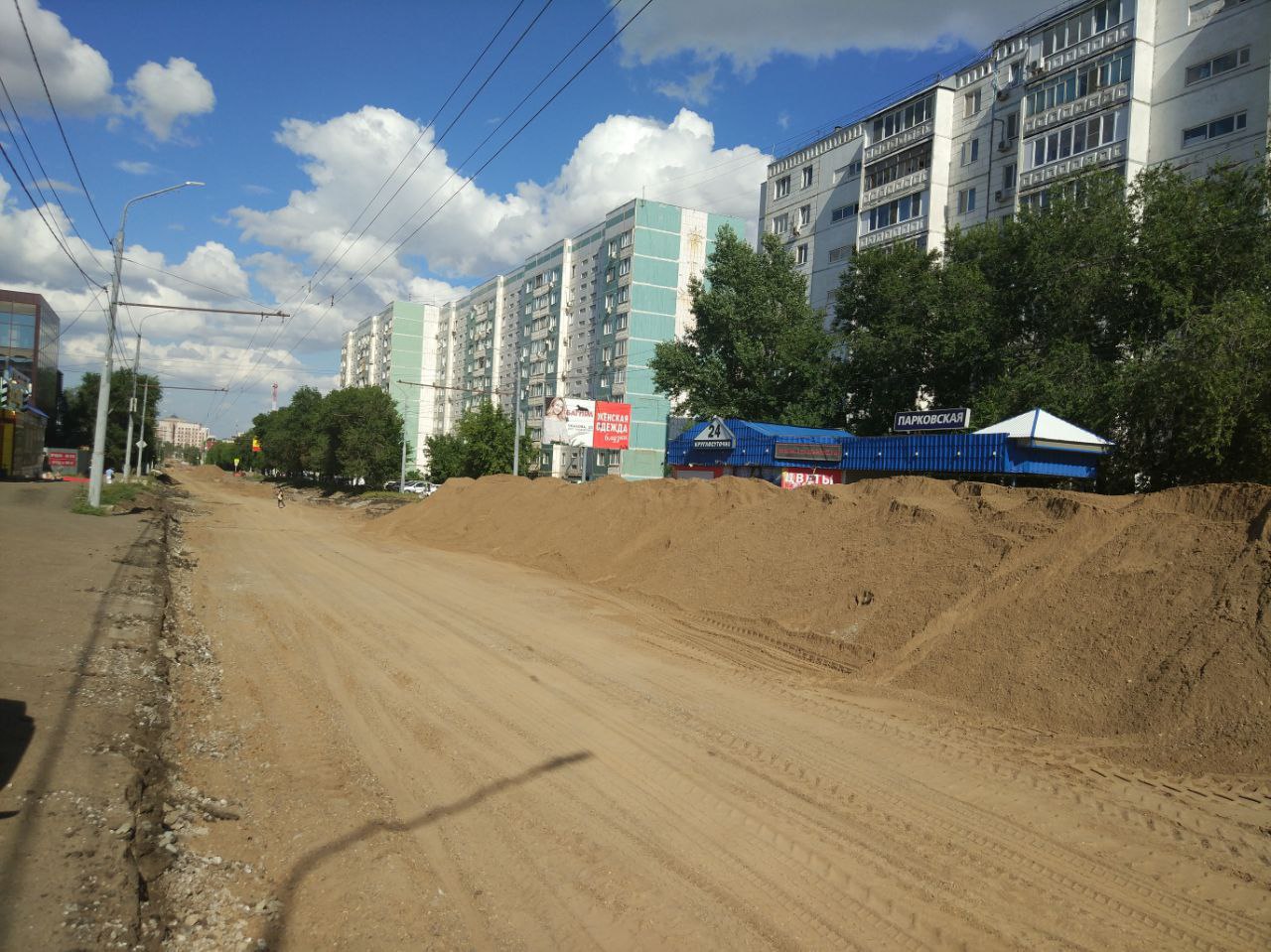 В районе остановочного пункта «Парковская» на улица Туркестанская уже заготовлены штабеля песчано-гравийной смеси.