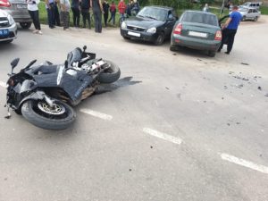 Во 2-м микрорайоне Бугуруслана столкнулись два автомобиля и мотоцикл