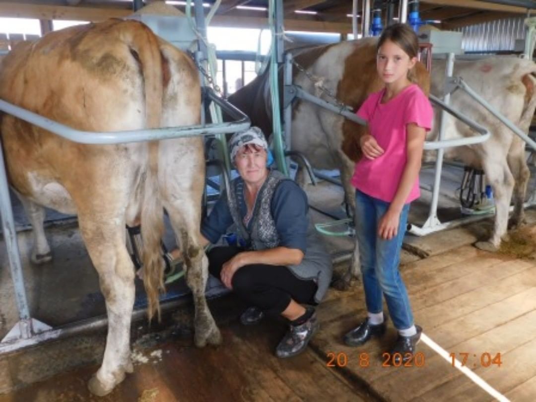 Сейчас во время летних каникул женщина приходит на ферму вместе со своей дочкой Таней. Девочка с малых лет постигает навыки профессии.