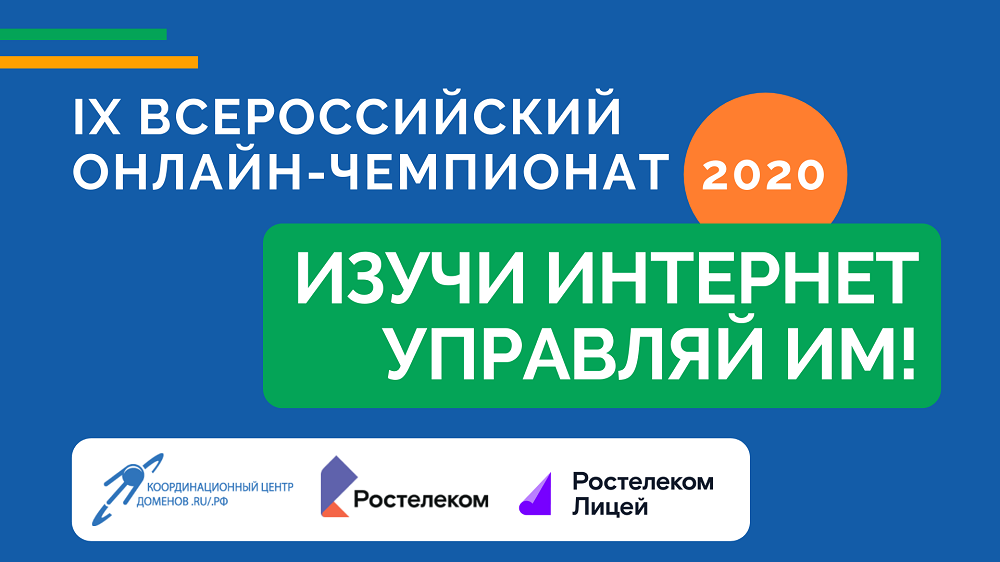 Крупнейший в России провайдер цифровых услуг и решений «Ростелеком» и Координационный центр доменов .RU/.РФ объявляют о старте регистрации на IX Всероссийский онлайн-чемпионат по игре «Изучи интернет — управляй им».
