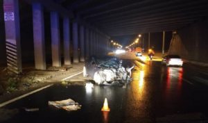 В Оренбурге автомобиль KIA врезался в опору путепровода
