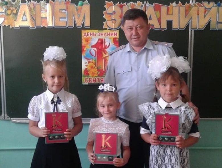 В День знаний сотрудник полиции пришёл с подарками в среднюю школу села Соболево.