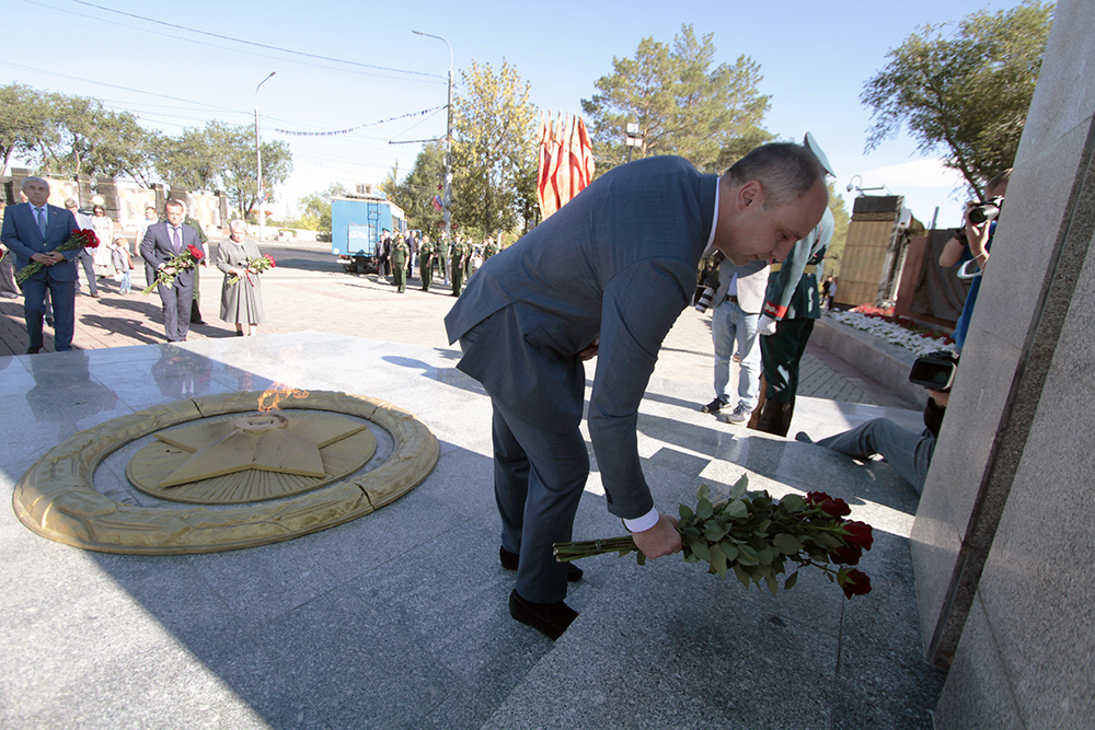Сегодня утром губернатор Денис Паслер возложил цветы к мемориалу «Вечный огонь» на проспекте Победы в Оренбурге.