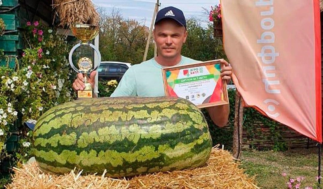 Фермер из Соль-Илецка Пётр Есипчугов вырастил самый большой арбуз в России в 2020 году весом 57 кг 940 г.