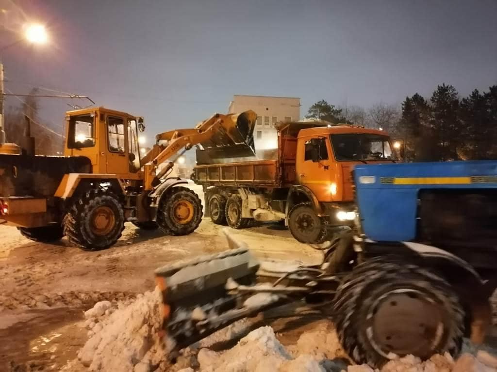 Ежесуточно в уборке городской территории было задействовано порядка 30 единиц спецтехники. Вывезли снег с улиц Шевченко, Чичерина, Пролетарской, Комсомольской, Донгузской.