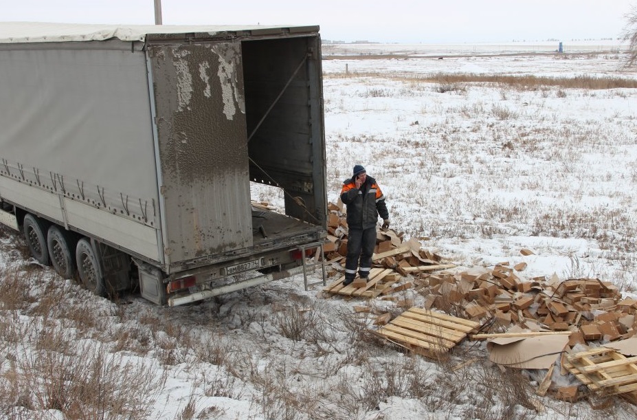 В настоящее время у места ДТП останавливаются водители других большегрузов, готовые оказать помощь по вытягиванию фуры на трассу.