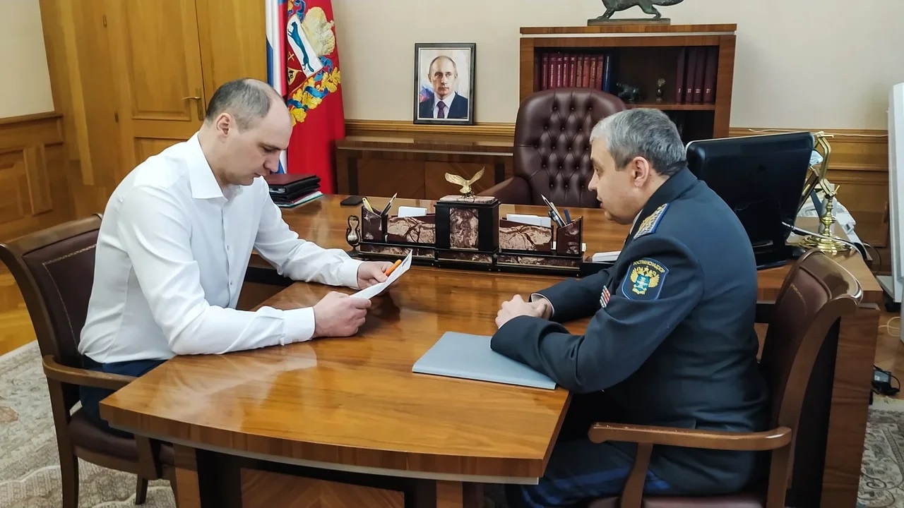 Губернатор Денис Паслер провёл встречу с начальником Западно-Уральского межрегионального управления, государственного автодорожного надзора Федеральной службы по надзору в сфере транспорта Сергеем Мережко.