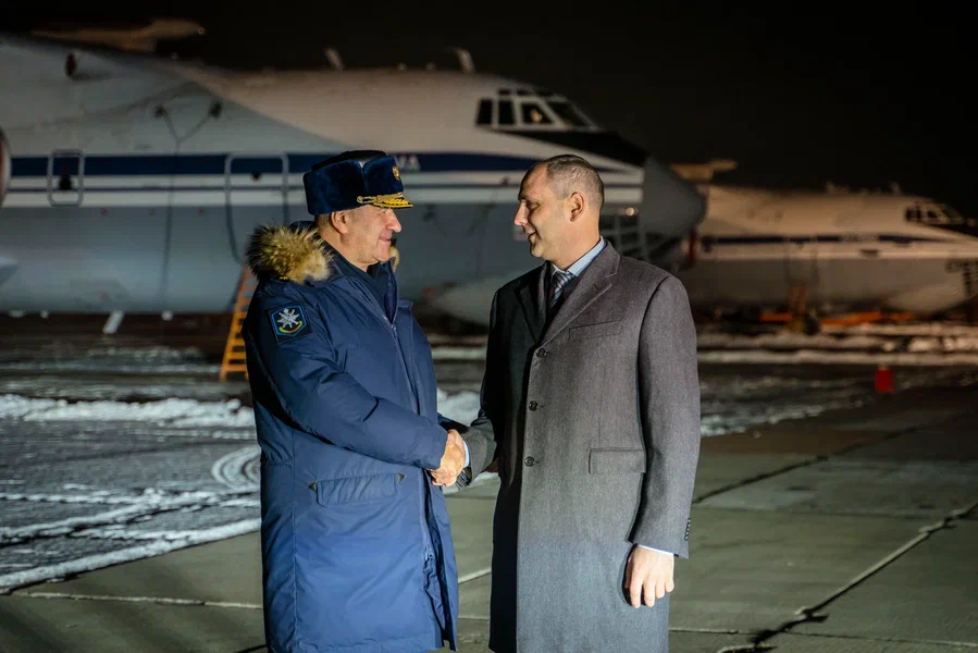 Губернатор Денис Паслер встретился с Командующим ВТА генерал-лейтенантом Владимиром Бенедиктовым и осмотрел парк самолетов ИЛ-76, которые составляют эскадрилью в составе 117-го военно-транспортного авиационного полка 18-ой военно-транспортной авиационной дивизии.