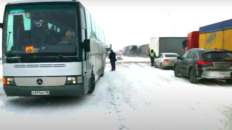 Непогода застала в пути автобус, в котором находилась команда юных хоккеистов. 15 школьников направлялись из Самарской области на соревнования в Стерлитамак. Автобус оказался в многокилометровой колонне среди других транспортных средств.