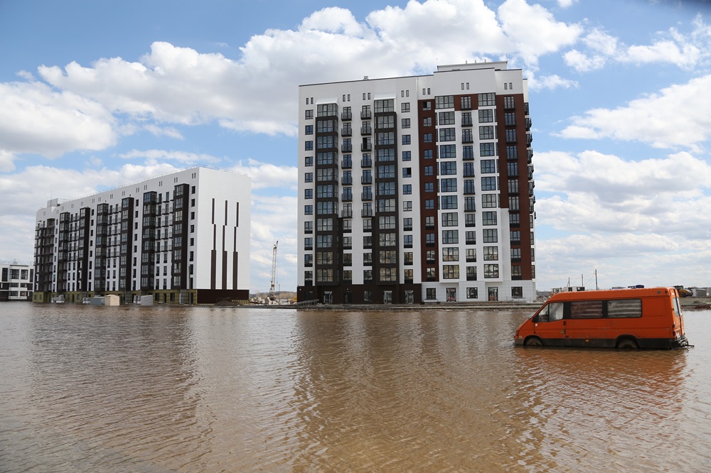 Накануне вода из Урала вплотную подошла к многоэтажкам в новом оренбургском ЖК «Гранд Парк».