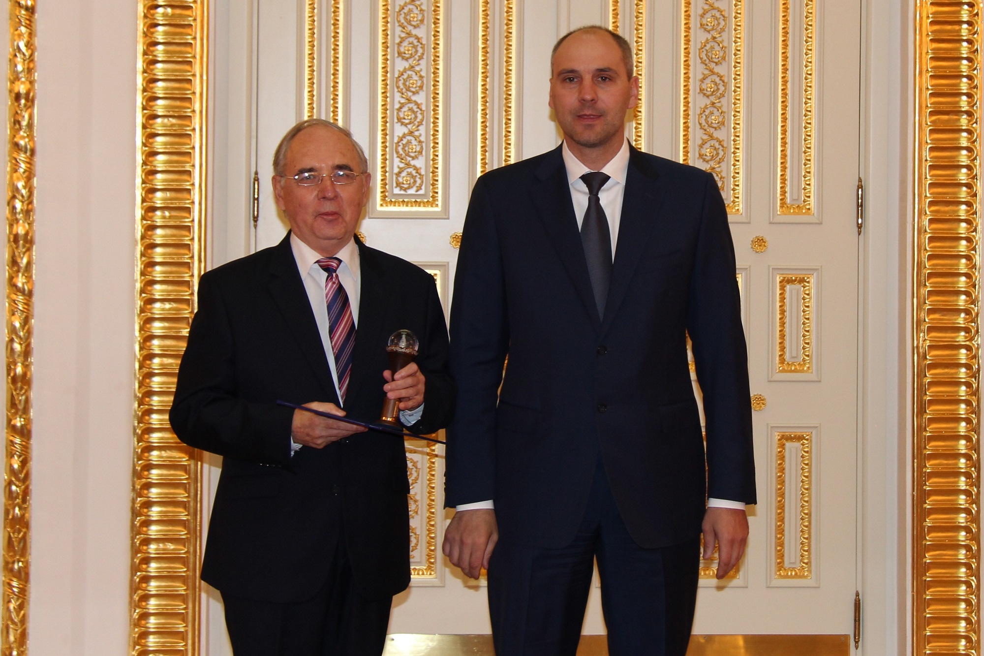 На фото: От банка награду получает Председатель Совета директоров А. П. Соколов