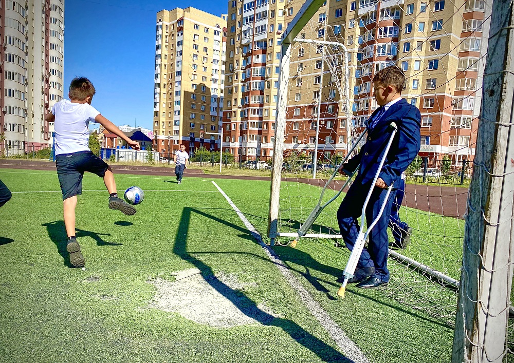 Его я увидел сразу. Школьника на костылях, защищающего футбольные ворота на уроке физкультуры, – такое не каждый день встречается. Он отбивал мяч и здоровой ногой, и костылями.