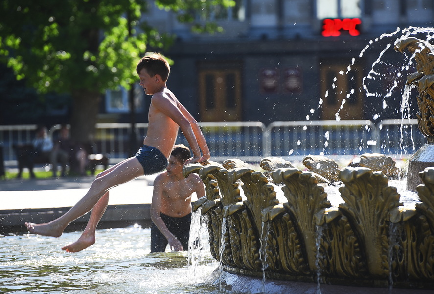 Слышишь ли ты, изнурённый полуденным солнцем путник, как вдалеке журчит его песня? О нет, это не песнь о революции, это гимн передышке и прохладе. Это поёт фонтан. И, казалось бы, в нашем невеликом городке их не так много, но в такие деньки они становятся Меккой, и прежде всего, для детей и животных. Те, кто условностей, о которых я говорил, лишены напрочь. И вы думаете, что в столицах как-то иначе, что там народ более чопорный? Докладываю – каждое лето в Москве я снимал, как народ лезет в фонтан с головой, причём в двух шагах от Кремля, Красной площади и всех этих символов власти. Жара, в отличие от голода, как раз таки тётка. Причём злая. О фонтан, эту песнь я пою сейчас тебе!