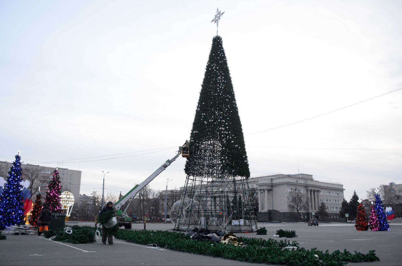Первая бригада монтажников вышла на площадь Ленина 13 ноября. Каждый день над украшением новогоднего городка трудятся более 100 человек из шести подрядных организаций.