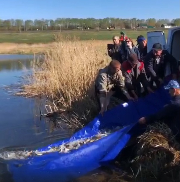 12 мая, несмотря на ненастную погоду, сильный ветер и дождь они провели зарыбление Бактакского пруда. Это можно смело назвать историческим моментом. В воду было выпущено 400 килограммов мальков карпа и белого амура.