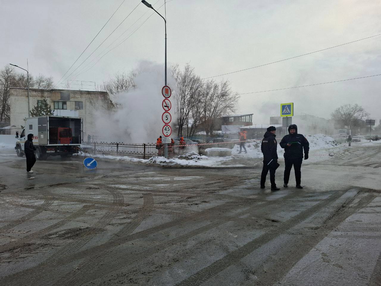 Инцидент произошёл 30 января возле пешеходного перехода у дома № 7б на улице Монтажников. Из-за обрушения асфальта на месте аварии образовалась яма с горячей водой, в которую упали двое студентов. Пострадавших госпитализировали.
