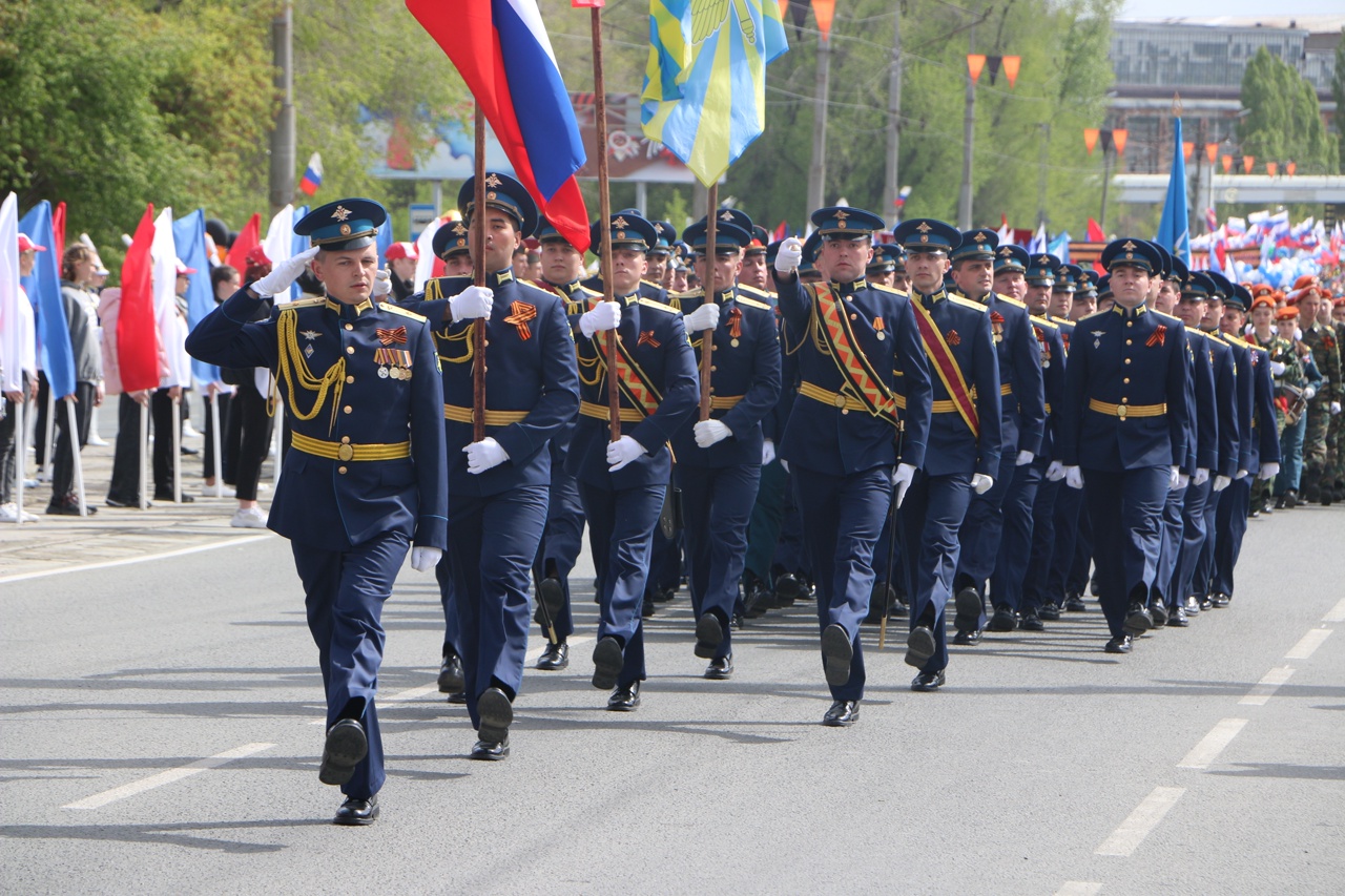 Открыли парад военнослужащие войсковой части №84194. За ними промаршировали учащиеся кадетских классов школ города и юнармейцы.