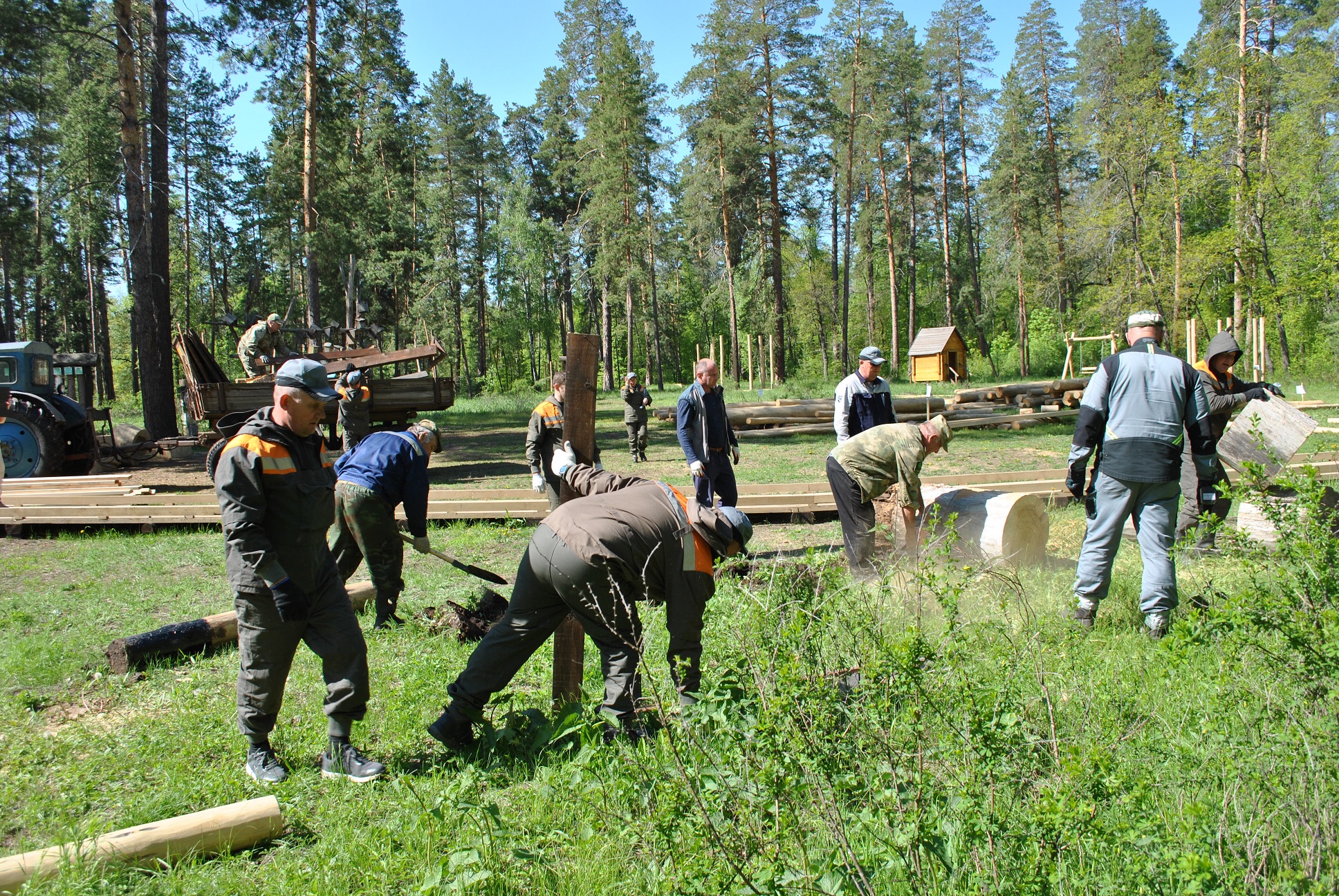 На днях, команда из 11 волонтеров НКНП вместе с лесниками демонтировала крупногабаритные устаревшие сооружения на месте нового экопарка, корчевала пни, распределяла бревна к строящимся рекреационным зонам и детским площадкам; удаляла сухостой, сорные заросли, крапиву и стерню вокруг игровых площадок. Общими усилиями удалось даже перенести живописную корягу на место, которое ей предназначили дизайнеры – планировщики. Для сведения, к новому экологическому маршруту выдающуюся корягу диаметром более 3 метров доставили на специальном прицепе. Принял работу волонтеров лично директор национального парка Андрей Александрович Латыпов, выразил благодарность и команде, и компании.