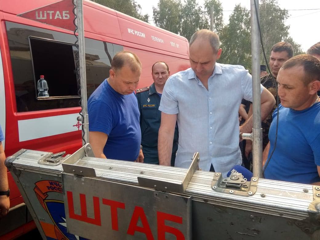 Губернатор Оренбургской области Денис Паслер, глава муниципального образования Виктор Пауков и начальник регионального управления МЧС России Александр Зенов работают в оперативном штабе на месте природного пожара в Кувандыкском ГО.