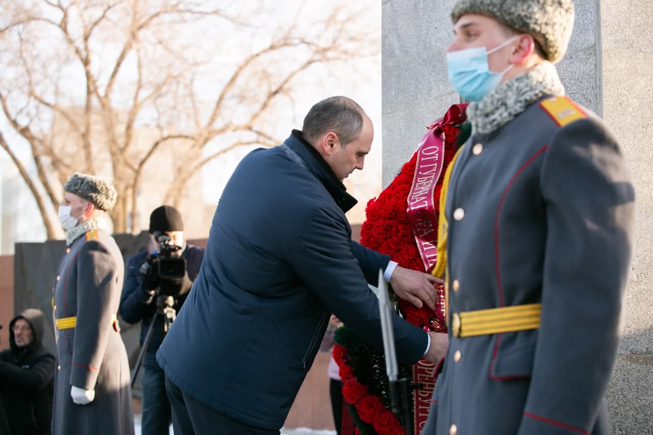 Вместе с членами Правительства, военнослужащими разных родов войск, представителями силовых структур, депутатами Законодательного Собрания, членами общественных организаций региона он возложил цветы к мемориалу «Вечный огонь» на проспекте Победы в Оренбурге.