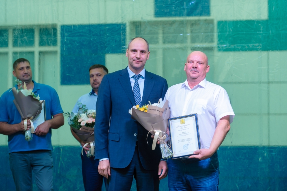 Глава региона вручил награды работникам предприятия: почетную грамоту Министерства промышленности и торговли РФ начальнику участка электроснабжения дирекции по ремонту Ринату Муллабаеву, благодарности губернатора — водителю автотранспортного цеха Александру Сеньчукову, мастеру КИПиА дирекции по ремонту Вадиму Карло и главному горняку управления Олегу Попову.