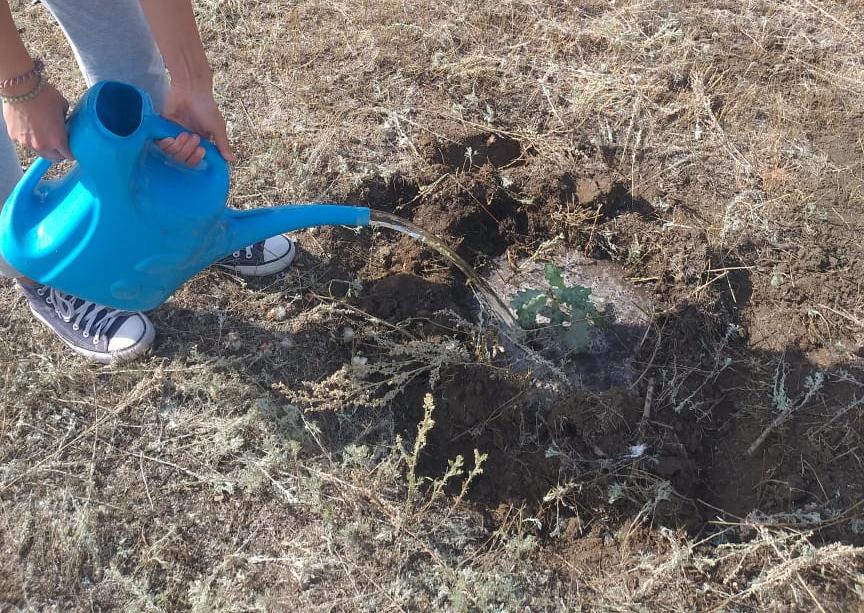 Сотрудник Заповедников Оренбуржья Евгений Чуриков и ребята из Бурлыкской школы Беляевского района высадили на пришкольной территории 10 саженцев дуба.