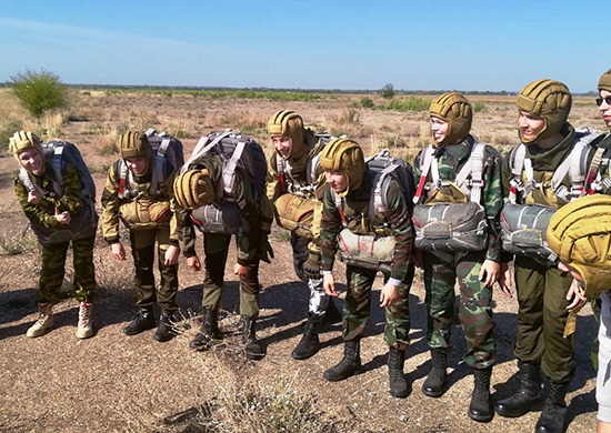 Воспитанники сводного юнармейского отряда «Содружество» Оренбурга регулярно совершают прыжки с парашютом.