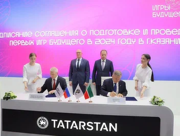 На нем состоялось подписание соглашения о проведении в Казани международного спортивного события «Игры Будущего 2024». Подписи на документе поставили министр спорта Олег Матыцин и президент Республики Татарстан Рустам Минниханов.