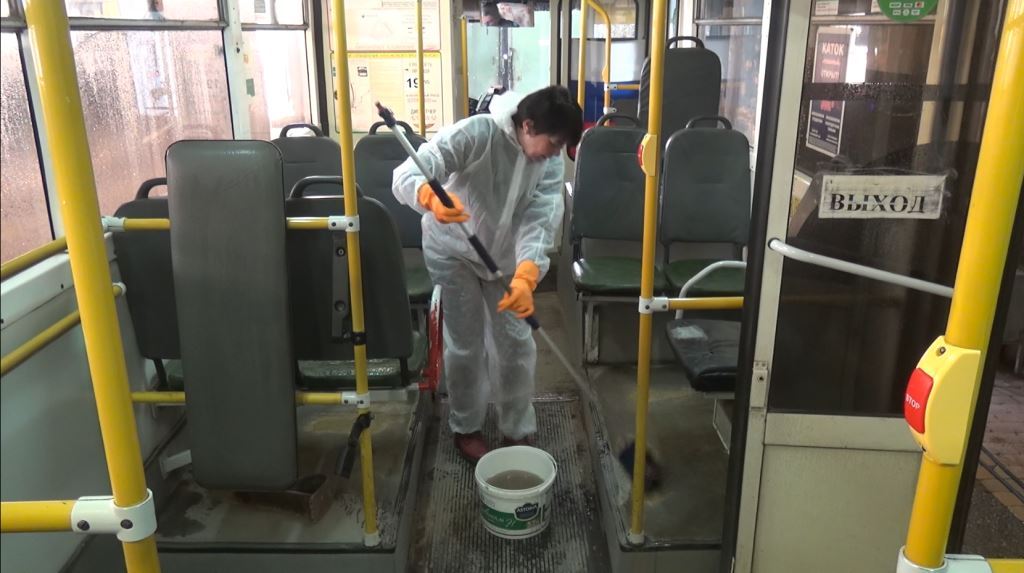 Кондукторы и водители проводят дезинфекцию всех поверхностей салонов, в первую очередь поручней и сидений хлорным раствором после завершения каждого рейса. В среднем каждая машина проезжает в день по маршруту до 5 кругов.