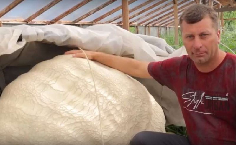 Фермер Виталий Мокрушин за 70 дней вырастил гигантскую тыкву из семечки, привезённой из Мексики. Вес плода — около 320 килограммов.