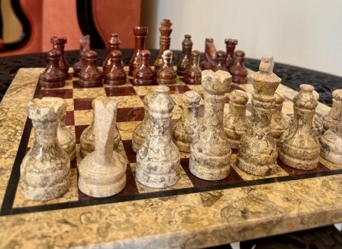 Шахматы, изготовленные из яшмы и ракушечника, будут на постоянной основе находиться в библиотеке искусств в свободном доступе для всех желающих. В рамках события по передаче подарка состоится шахматный турнир.