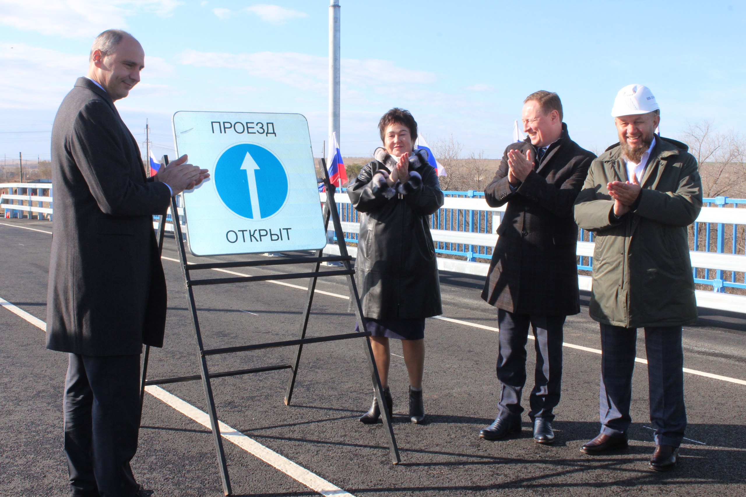 Денис Паслер и глава регионального минстроя Александр Полухин открыли движение по досрочно отремонтированному мосту на 77 километре трассе «Ивановка – Сорочинск — Ташла».